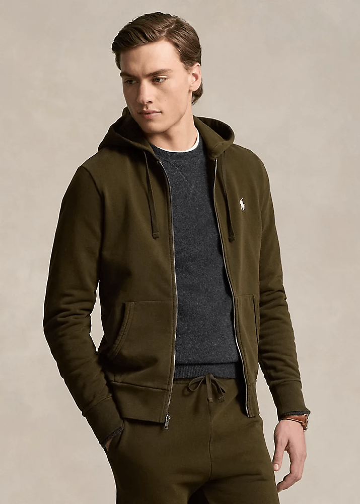Realizzato in cotone loopback, più leggero della classica felpa RL, questo modello con cappuccio presenta un interno morbidissimo, come fosse di spugna, e un affascinante aspetto vissuto, frutto di un lavaggio speciale.