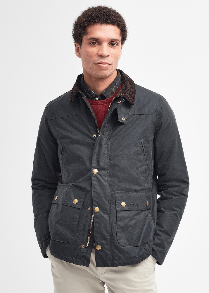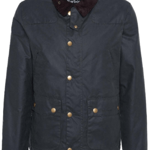 La giacca Reelin, rivisitazione invernale dell’iconica formula Barbour, è realizzata in cotone cerato e presenta una fodera trapuntata con il nostro caratteristico disegno tartan antico. Dotata di toppe sulle spalle, colletto in velluto a coste pesante e tasche scaldamani con zip, la giacca è rifinita con il logo ricamato sulla patta della tasca sinistra.