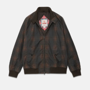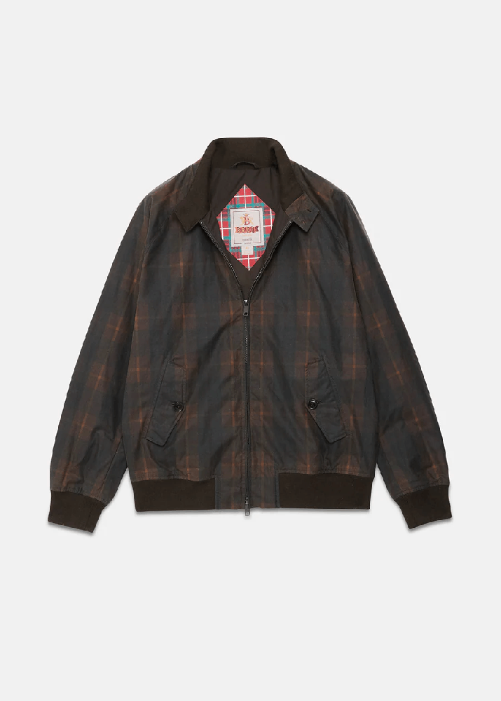 La giacca cerata G9 con motivo di Baracuta rappresenta una versione più moderna del classico modello G9. Questo modello, realizzato in 100% cotone cerato, presenta un inconfondibile motivo a quadri in stile britannico, è altamente idrorepellente ed è caratterizzata da un finish opaco e morbido al tatto.