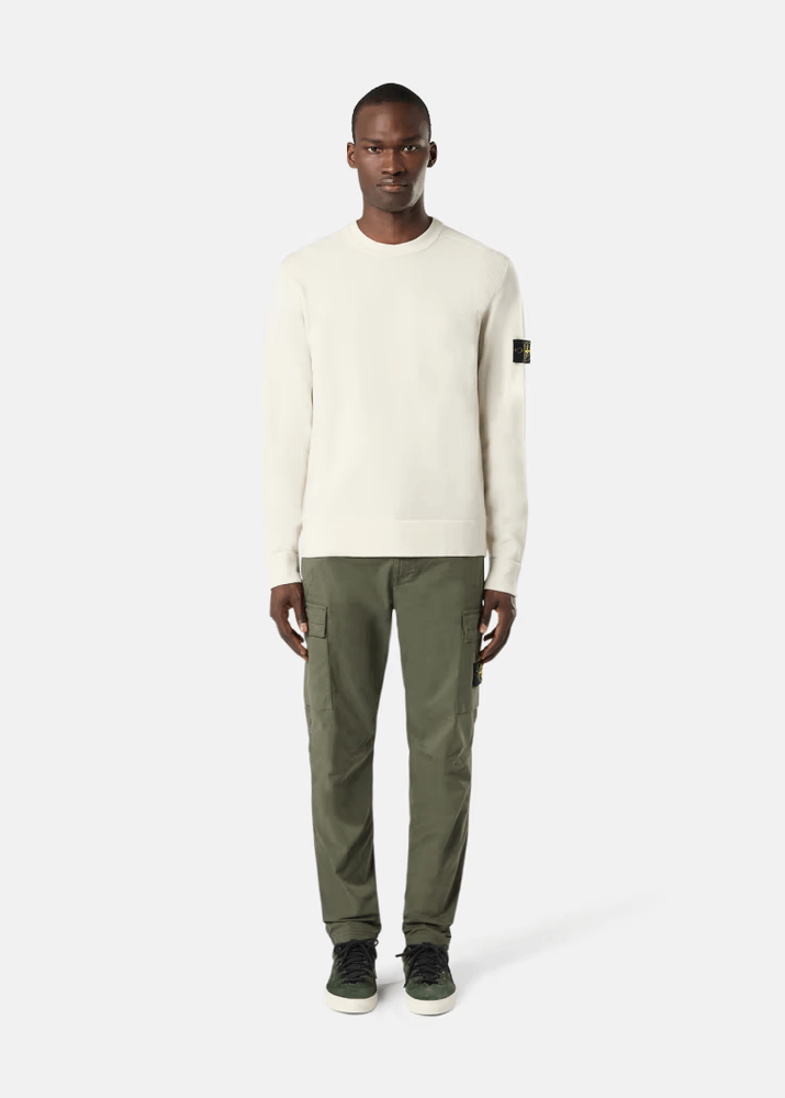 Maglia girocollo in lana stretch certificata RWS. Maglia rasata. Finezza 12. Il Responsible Wool Standard (RWS) descrive e certifica il benessere degli animali e le pratiche di gestione del territorio nella produzione della lana, tenendo traccia del materiale certificato dall’allevamento al prodotto finale.