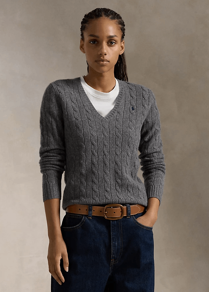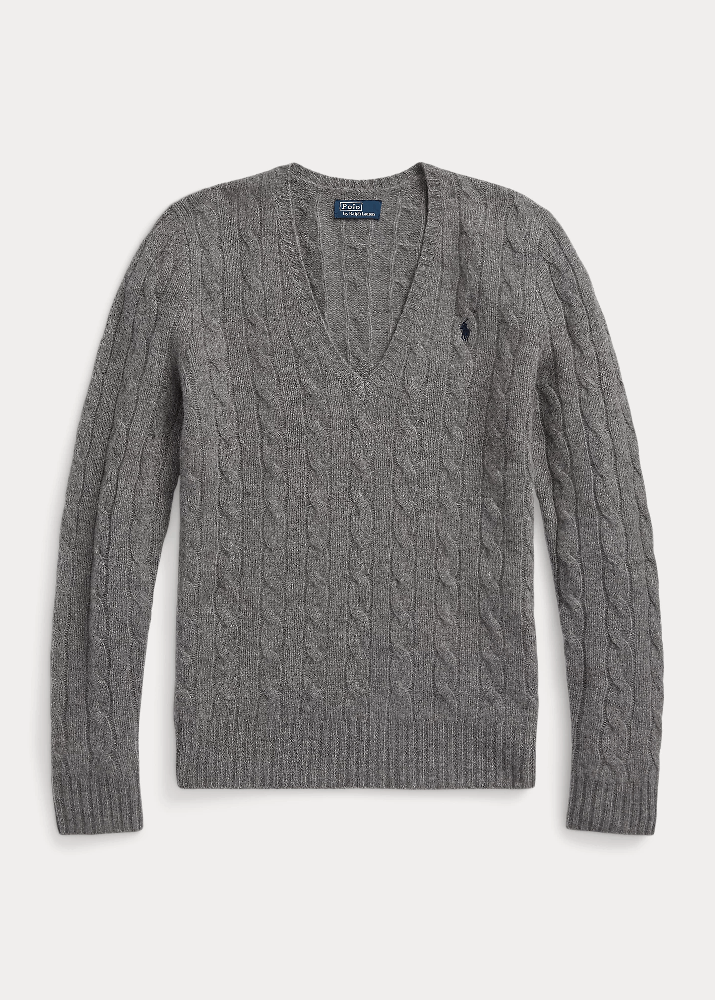 Realizzata con un morbido misto di lana e cashmere a trecce, questa maglia con scollo a V di peso medio è caratterizzata da una silhouette aderente ed è impreziosita dal nostro esclusivo pony ricamato sul torace.